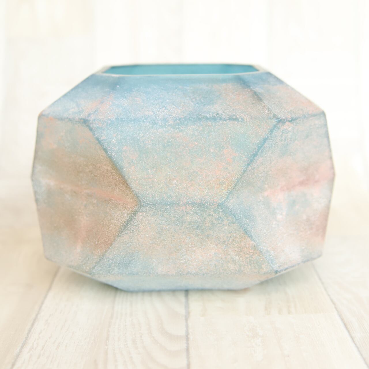 メタリックブルーの多面体が複雑に光を反射する様は、サファイヤの原石を彷彿とさせます。飾る向き、置き方により様々なアレンジの仕方を提案できるベースです。
